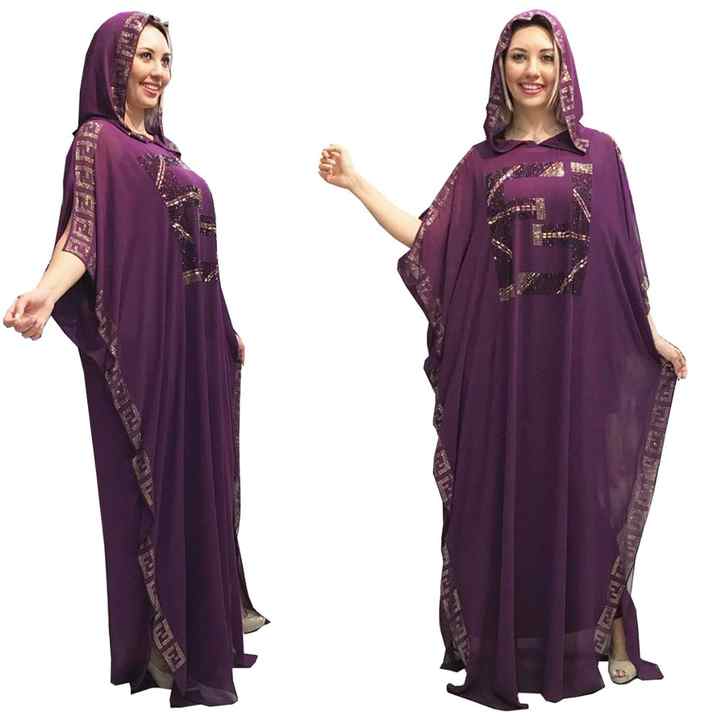 Wholesale A6413 African Women S Clothing Ironing Drill Chiffon Purple Abaya Kaftan Dress Round Collar Wide Bat Sleeve Big Pattern Gown From M Alibaba Com